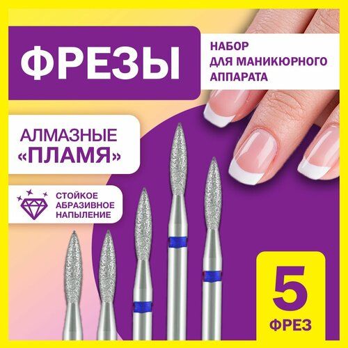 НАЙТИ ВЫГОДНЕЕ - Набор алмазных фрез 5 шт Пламя заостренное 2,3 мм для маникюра и педикюра