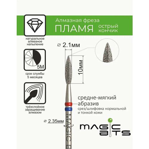 НАЙТИ ВЫГОДНЕЕ - Magic Bits Алмазное пламя 2.1 мм острый кончик с натуральным напылением мягкого абразива
