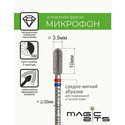 Фрезы Magic Bits. Новые уникальные алмазные фрезы с натуральной крошкой собственного производства в Санкт-Петербурге. Внимание Алмазный "микрофон" для быстрого счищения кутикулы (вместо шара) и обработки боковых валиков. Форма "микрофон" позволяет легко и быстро раскрыть и вывернуть кутикулу перед ее счищением.
