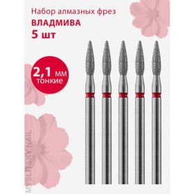НАЙТИ ВЫГОДНЕЕ - Фреза для маникюра и педикюра алмазная ВладМиВа для кутикулы 806 104 243N 514 021 Тонкая пламя (упаковка 5 шт)