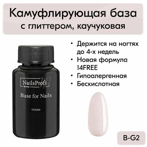 НАЙТИ ВЫГОДНЕЕ - NailsProfi, База для ногтей каучуковая с глиттером, шиммером, блестками, 14FREE, Rubber Base Glitter 2 - 30 мл
