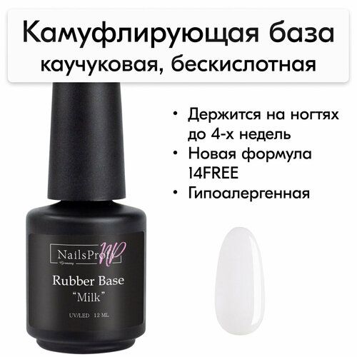 НАЙТИ ВЫГОДНЕЕ - NailsProfi Базовое покрытие Rubber Base, milk, 12 мл