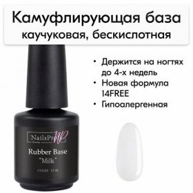 Rubber Base "Milk" - базовое слабокислотное камуфлирующие покрытие средней эластичности для ногтей и средней вязкости.