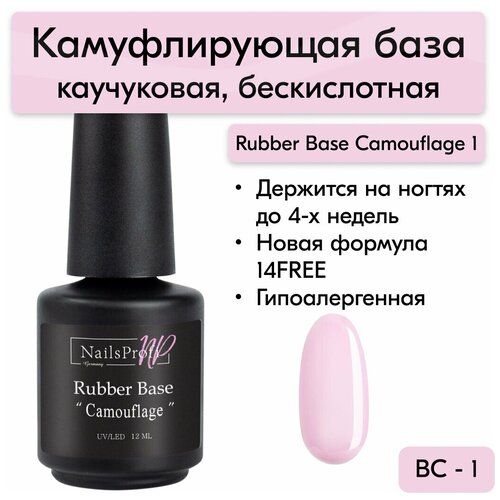 НАЙТИ ВЫГОДНЕЕ - NailsProfi Базовое покрытие Rubber Base, Camouflage 1, 12 мл