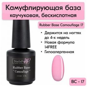 Цветная камуфлирующая каучуковая база для ногтей Rubber Base Camouflage - базовое бескислотное, каучуковое, камуфлирующие покрытие средней эластичности для ногтей и средней вязкости.