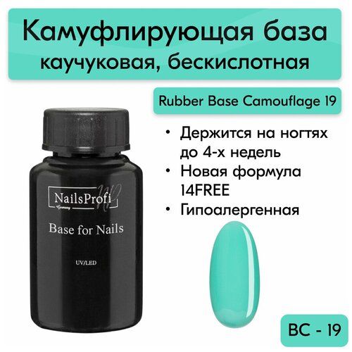 НАЙТИ ВЫГОДНЕЕ - NailsProfi Базовое покрытие Rubber Base, бирюзовый, 30 мл