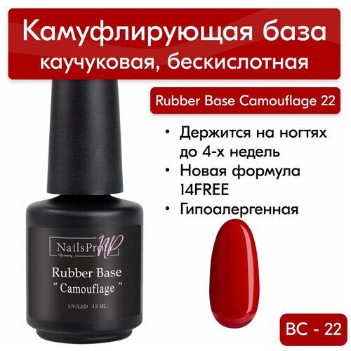 НАЙТИ ВЫГОДНЕЕ - NailsProfi Базовое покрытие Rubber Base, красный, 12 мл