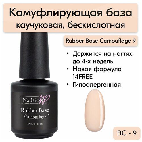 Способ применения: на подготовленную ногтевую пластину нанести в один/два слоя камуфлирующую базу просушить каждый слой отдельно, запечатать торцы, сушить в LED-лампе 60 сек или UV-лампе 120 сек. Использовать с продукцией NailsProfi.