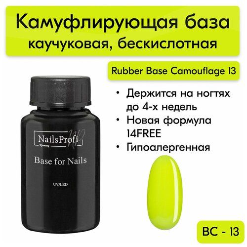 НАЙТИ ВЫГОДНЕЕ - NailsProfi Базовое покрытие Rubber Base, зеленый,, 30 мл