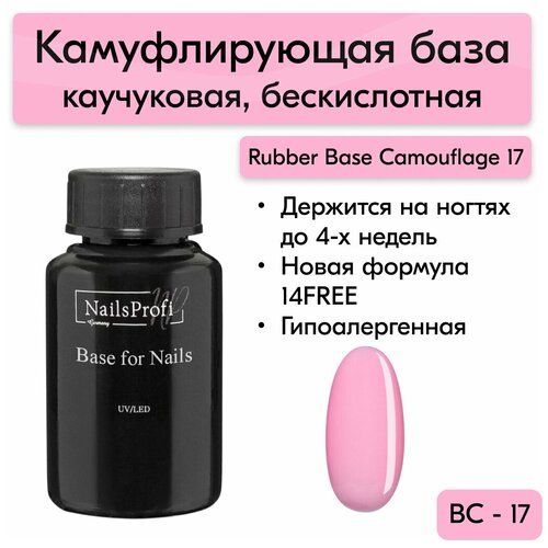 НАЙТИ ВЫГОДНЕЕ - NailsProfi Базовое покрытие Rubber Base, розовый,, 30 мл