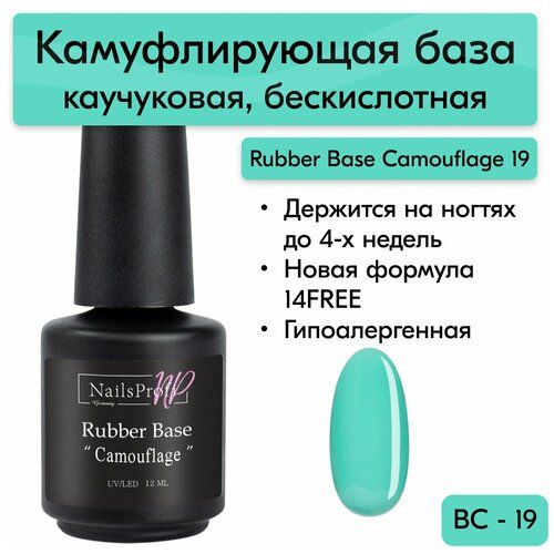 НАЙТИ ВЫГОДНЕЕ - NailsProfi Базовое покрытие Rubber Base, бирюзовый, 12 мл