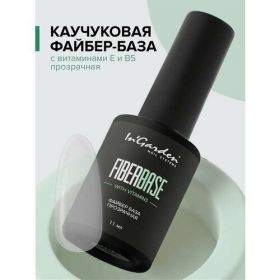НАЙТИ ВЫГОДНЕЕ - In'Garden Ингарден Каучуковая FIBER база для ногтей с витаминами Е и В5 прозрачная, 11 мл