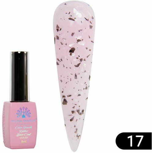 НАЙТИ ВЫГОДНЕЕ - Каучуковая цветная база для гель-лака с поталью / камуфляж основа для ногтей, база с фольгой, 8 мл / 17