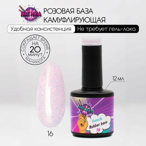 НАЙТИ ВЫГОДНЕЕ - Imenka Именька French Rubber Base 016, камуфлирующая база 016, 12 мл