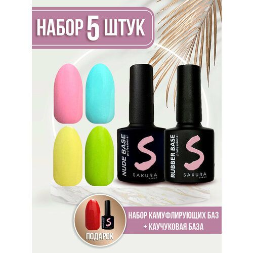 НАЙТИ ВЫГОДНЕЕ - Набор камуфлирующих баз для ногтей Sakura, неоновые, каучуковые, 5 шт по 8 мл