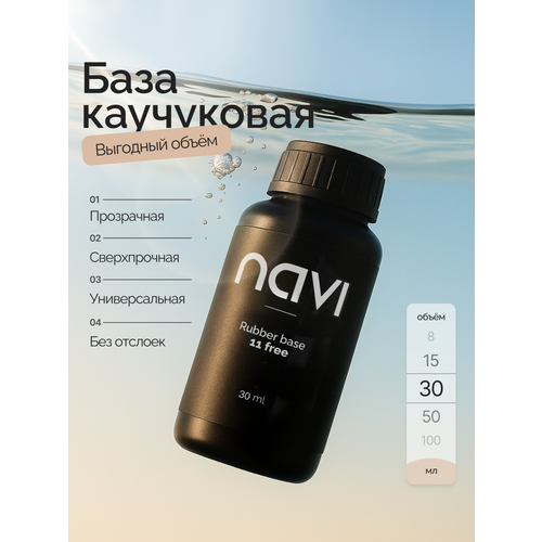 Профессиональная основа для ногтей NAVI Rubber Base 11 Free - каучуковая база для ногтей. Эта сверхпрочная и эластичная база (pH 3-4) исключает риск возникновения аллергии и идеально подходит для любого типа ногтей, включая тонкие и проблемные, а также для гелевых типс.