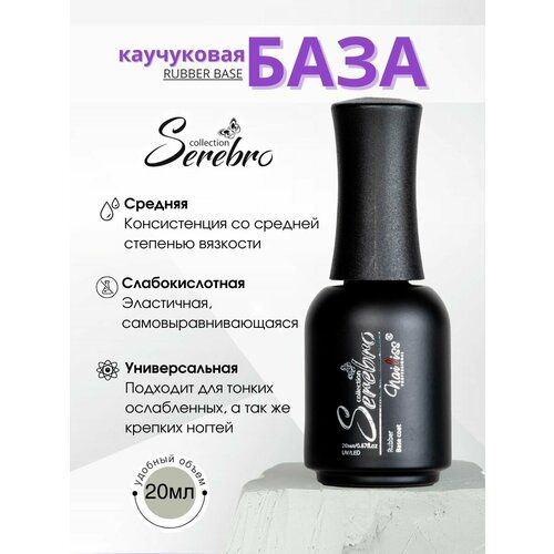 Каучуковая база для гель-лака Serebro Rubber base – это идеальное решение для создания долговечного и качественного маникюра. Благодаря своей формуле, каучуковая база для ногтей обеспечивает отличное сцепление с натуральными ногтями, что значительно увеличивает срок носки покрытия.