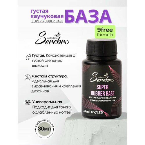 Каучуковая база для гель-лака Serebro Super rubber base – это идеальное решение для создания долговечного и качественного маникюра. Благодаря своей формуле, каучуковая база для ногтей обеспечивает отличное сцепление с натуральными ногтями, что значительно увеличивает срок носки покрытия. Используйте базу каучуковую для ногтей, чтобы защитить свои ногти от возможных повреждений и всегда быть уверенной в стойкости цвета.