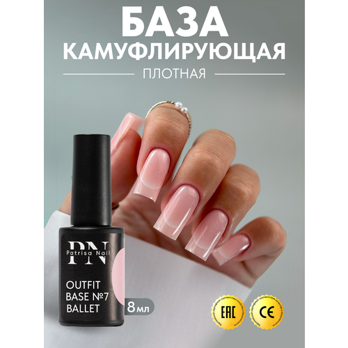 НАЙТИ ВЫГОДНЕЕ - Камуфлирующая база для ногтей Outfit №7 от Patrisa Nail, Ballet, розово-персиковый с шиммером, 8 мл