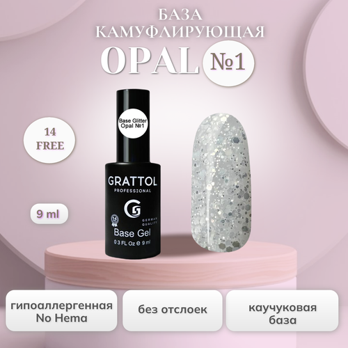 НАЙТИ ВЫГОДНЕЕ - Grattol Rubber Base Opal 1 - камуфлирующая база для гель-лака, 9 мл