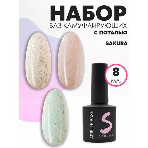 НАЙТИ ВЫГОДНЕЕ - Набор камуфлирующих баз для ногтей и маникюра Sakura, 3 шт по 8 мл