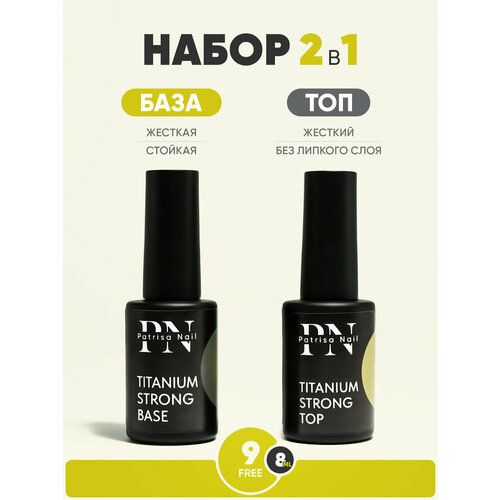 НАЙТИ ВЫГОДНЕЕ - Набор для ногтей Patrisa Nail: жесткая база и жесткий топ Titanium Strong, по 8 мл