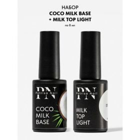 НАЙТИ ВЫГОДНЕЕ - Набор для ногтей: каучуковая молочная база камуфлирующая Coco milk base + молочный глянцевый топ MiLK Top Light, по 8 мл