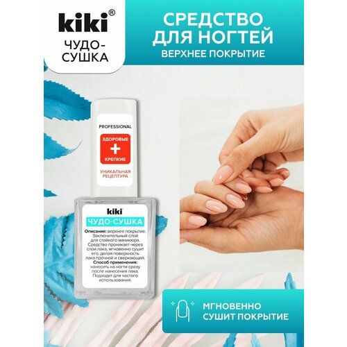 Верхнее покрытие Kiki экспресс-сушка и защитное покрытие для лака – идеальный выбор для тех, кто ценит красивый и ухоженный маникюр. Этот закрепитель объемом 10 мл эффективно ускоряет высыхание лака, обеспечивая блестящий и устойчивый результат.