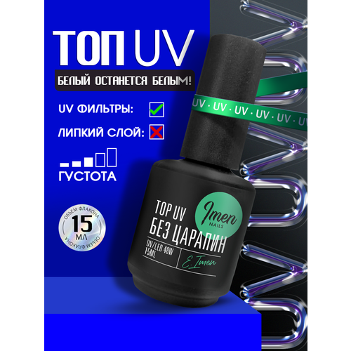 НАЙТИ ВЫГОДНЕЕ - IMEN Имень Топ для ногтей Антивандальный Без Царапин UV, c UV фильтрами, без липкого слоя, 15 мл