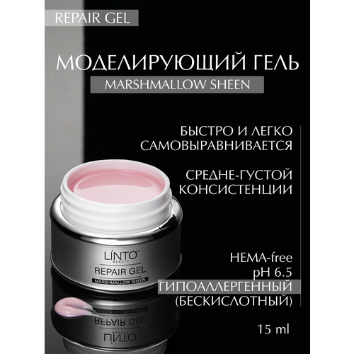 НАЙТИ ВЫГОДНЕЕ - REPAIR GEL MARSHMALLOW SHEEN бежево-розовый с мелким шиммером гель для маникюра LiNTO в банке 15 мл