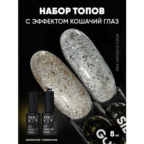 НАЙТИ ВЫГОДНЕЕ - Набор топов Cat Shine Top Gold+Silver, от Patrisa Nail, прозрачные с блестками, 2 штуки по 8 мл