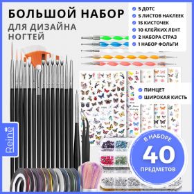 НАЙТИ ВЫГОДНЕЕ - Набор кистей для маникюра и наращивания ногтей, с наклейками, стразами, лентами, дотсы, пинцет и поталь.