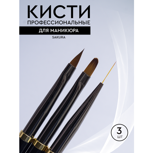 НАЙТИ ВЫГОДНЕЕ - Набор кистей Sakura Gel для маникюра и дизайна ногтей, 3 штуки