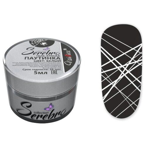 НАЙТИ ВЫГОДНЕЕ - Гель-краска для маникюра Serebro Паутинка для дизайна ногтей, белая, 5 мл