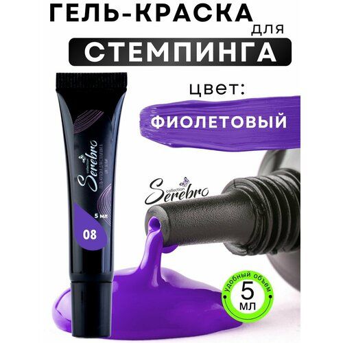 НАЙТИ ВЫГОДНЕЕ - Гель-краска для стемпинга Serebro №08, фиолетовая, яркий цвет, 5мл.