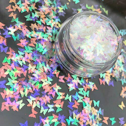 В баночке 1 гр Камифубуки радужные Zoo Nail Art №1233 бабочки 3 мм, 1 г