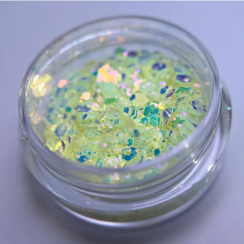 Микс шестигранников разного размера с мега блеском, флуоресцентный (светится в темноте).