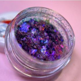 «Юки» переводится с японского как «снег», и это название лучше всего передает суть этого материала для нейл-арта – он похож на крупные хлопья снега, хрупкие и невесомые. Это тончайшие пластины пигмента разной формы и размера, которые можно аккуратно уложить на ноготь не испортив их формы, а можно легким движением растереть в пыль. И именно в этом главная прелесть этого материала – вариантов его нанесения очень много, и все они будут выглядеть совершенно по-разному. Баночка одна, дизайнов – столько, на сколько хватит вашей фантазии