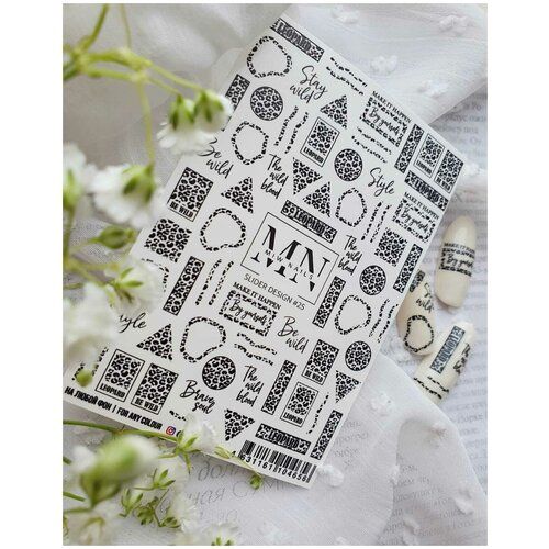 НАЙТИ ВЫГОДНЕЕ - MIW Nails Слайдеры для ногтей водные наклейки для дизайна #25 черно-белый геометрия, леопардовый