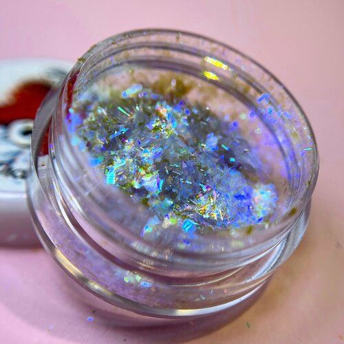 «Юки» переводится с японского как «снег», и это название лучше всего передает суть этого материала для нейл-арта – он похож на крупные хлопья снега, хрупкие и невесомые. Это тончайшие пластины пигмента разной формы и размера, которые можно аккуратно уложить на ноготь не испортив их формы, а можно легким движением растереть в пыль. И именно в этом главная прелесть этого материала – вариантов его нанесения очень много, и все они будут выглядеть совершенно по-разному. Баночка одна, дизайнов – столько, на сколько хватит вашей фантазии