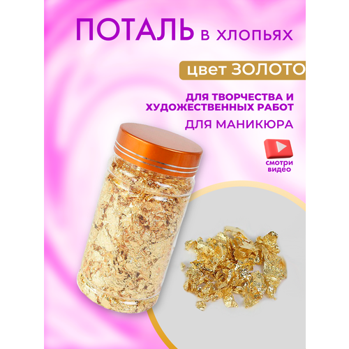 НАЙТИ ВЫГОДНЕЕ - Золотистая поталь в хлопьях для творчества и маникюра, имитация сусального золота