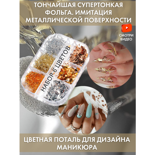 НАЙТИ ВЫГОДНЕЕ - Поталь для ногтей с золотом и серебром, палетка 6 секций — цветная фольга для дизайна