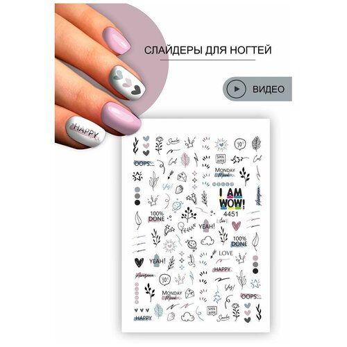 ную плёнку на бумажной подложке. Используется с гель лаком и лакомКомпания WOW уже больше 10 лет создает стикеры для ногтей, нашими наклейками пользуются во многих уголках мира, слайдеры WOW это проверенный продукт которому доверяют тысячи покупателей. Мы изготавливаем несколько видов слайдеров: на прозрачной пленке, на прозрачной пленке с белым фоном, вырезанные стикеры на белом фоне и 3Д слайдеры. Мы ценим время мастеров и собираем интересные дизайны чтобы их было легко сочетать друг с другом, чтобы клиенты мастеров были довольны полученным результатом. Ежемесячно каталог слайдеров и стикеров пополняется новыми и трендовыми дизайнами. Как правильно закрепить слайдеры. Для того чтобы слайдеры держались дольше, следуйте простым правилам и у вас все получится) Разноцветные слайдеры от бренда «I am WOW» - качественный расходный материал для декорирования ногтей
