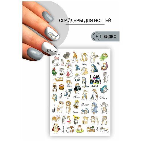 НАЙТИ ВЫГОДНЕЕ - Наклейки для ногтей, слайдеры для маникюра и педикюра. Стиль котик акуленок , надписи