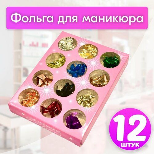 НАЙТИ ВЫГОДНЕЕ - NailsProfi, Поталь для ногтей, сусальная фольга разноцветная для дизайна маникюра, 12 шт