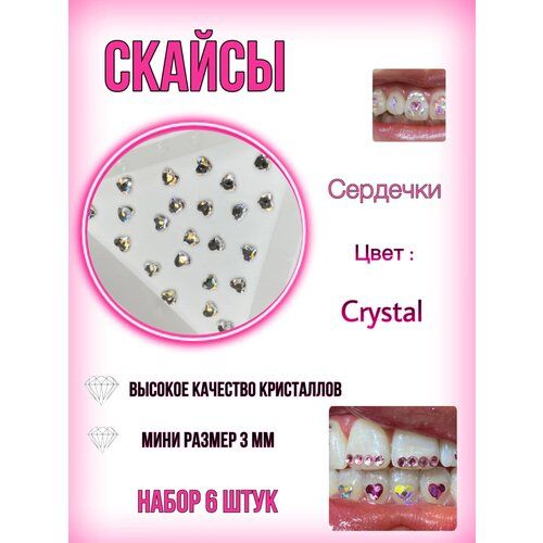 Стразы на зубы (Скайсы) - это отличный выбор для тех, кто хочет добавить немного блеска и стиля в свою улыбку. Эти фигурные стразы в форме сердечек выполнены из высококачественного стекла и имеют размер 3 мм, что делает их идеальными для украшения зубов. В наборе вы найдете 6 красивых страз, которые можно использовать как для зубок , так и для создания уникального дизайна ногтей.