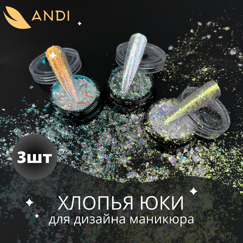 НАЙТИ ВЫГОДНЕЕ - ANDI Набор хлопьев юки для дизайна ногтей 3 цвета