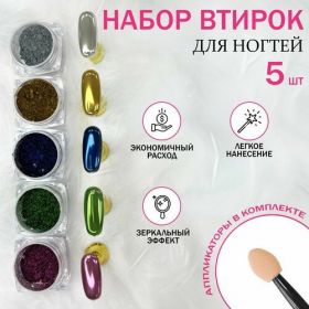 Хотите создать неповторимый маникюр с эффектом зеркального пигмента? Тогда вам точно понадобится вот этот набор втирки для ногтей серебряный, золотой, розовый, зеленый и синий. Каждая штука имеет зеркальный эффект, который придает вашим ногтям невероятное блеск и гламурный вид.