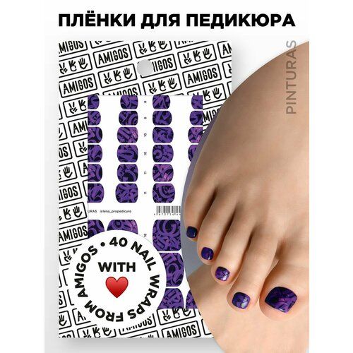 Пленки для педикюра от ТМ AMIGOS - быстрый дизайн и прочное покрытие. Включают 40 наклеек в 6ти размерах. Качественная тонкая пленка и четкий принт сделают педикюр неотразимыми. Для замеров ширины нотевой пластины-7 отрывных линеек, которые легко отделить и удобно использовать в работе. Ширина наклейки продублирована напротив каждого размера. Наклейка идеальна для ломких и тонких ногтей, т. к выступает дополнительным укреплением. Если сравнивать с другими покрытиями, пленка - менее аллергенна, т. к. не имеет в составе кислот и не соприкасается с кожей. Её можно применять на восстановленный протезированием ноготь. Можно использовать как на «голую» ногтевую пластину, так и под базу/укрепление гелем. Разнообразные дизайны - от однотона до фантазийных принтов не оставят клиентов равнодушными. Инструкция: 1. Подготовка НП: зашлифовать мягким бафом; обезжирить ногтевую пластину (не маслосолержащим веществом). Пленку можно устанавливать под укрепление базой/гелем, удалив липкий слой. 2. Подготовка пленок к использованию: снять защитную белую пленку с листа. 3. Установка. Определить размер пленки по ширине ногтя, используя линейку. Отделить пленку от подложки при помощи апельсиновой палочки, поддевая край. Закрепить пленку у основания ногтевой пластины (под кутикулу). Слегка натягивая, прижать по центру ногтевой пластины. Аккуратно пригладить складки от центра к краям до полного прилегания. Слегка натянуть и поджать пленку под свободный край. Спилить остатки от края к центру мягкой пилкой, не допуская складок. 4. Финишное закрепление. Покрыть пленку бескислотной базой, просушить в лампе. Покрыть топом, просушить в лампе. Возможно использование пленок без фиксации базой, используем бескислотный топ для сохранения рисунка. Финишное закрепление - не обязательно, но продлит носку. 5. Снятие. Снять финишное закрепление (фреза или размачивание). Смочить апельсиновую палочку в жидкости для снятия лака. Удалить пленку от краев к центру. Обязательно использование перчаток.