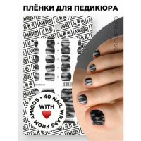 Пленки для педикюра от ТМ AMIGOS - быстрый дизайн и прочное покрытие. Включают 40 наклеек в 6ти размерах. Качественная тонкая пленка и четкий принт сделают педикюр неотразимыми. Для замеров ширины нотевой пластины-7 отрывных линеек, которые легко отделить и удобно использовать в работе. Ширина наклейки продублирована напротив каждого размера. Наклейка идеальна для ломких и тонких ногтей, т. к выступает дополнительным укреплением. Если сравнивать с другими покрытиями, пленка - менее аллергенна, т. к. не имеет в составе кислот и не соприкасается с кожей. Её можно применять на восстановленный протезированием ноготь. Можно использовать как на «голую» ногтевую пластину, так и под базу/укрепление гелем. Разнообразные дизайны - от однотона до фантазийных принтов не оставят клиентов равнодушными. Инструкция: 1. Подготовка НП: зашлифовать мягким бафом; обезжирить ногтевую пластину (не маслосодержащим веществом). Пленку можно устанавливать под укрепление базой/гелем, удалив липкий слой. 2. Подготовка пленок к использованию: снять защитную белую пленку с листа. 3. Установка. Определить размер пленки по ширине ногтя, используя линейку. Отделить пленку от подложки при помощи апельсиновой палочки, поддевая край. Закрепить пленку у основания ногтевой пластины (под кутикулу). Слегка натягивая, прижать по центру ногтевой пластины. Аккуратно пригладить складки от центра к краям до полного прилегания. Слегка натянуть и поджать пленку под свободный край. Спилить остатки от края к центру мягкой пилкой, не допуская складок. 4. Финишное закрепление. Покрыть пленку бескислотной базой, просушить в лампе. Покрыть топом, просушить в лампе. Возможно использование пленок без фиксации базой, используем бескислотный топ для сохранения рисунка. Финишное закрепление - не обязательно, но продлит носку. 5. Снятие. Снять финишное закрепление (фреза или размачивание). Смочить апельсиновую палочку в жидкости для снятия лака. Удалить пленку от краев к центру. Обязательно использование перчаток.